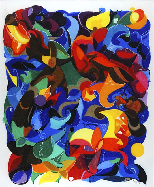On a Background of Blues pastels on paper 24 x 32"